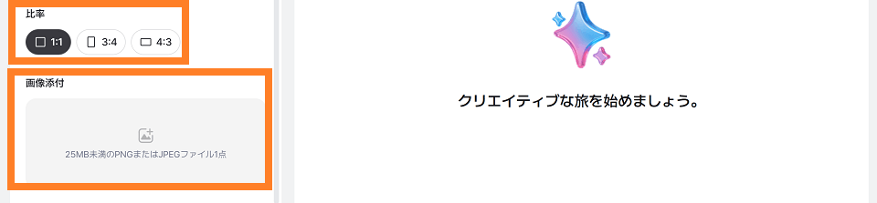 用途に合わせて画像のサイズ(例:正方形1:1、3:4など)を選択します。SNSのアイコンなら正方形、PC向けなら横長、スマホで魅せたいなら縦長がおすすめです。