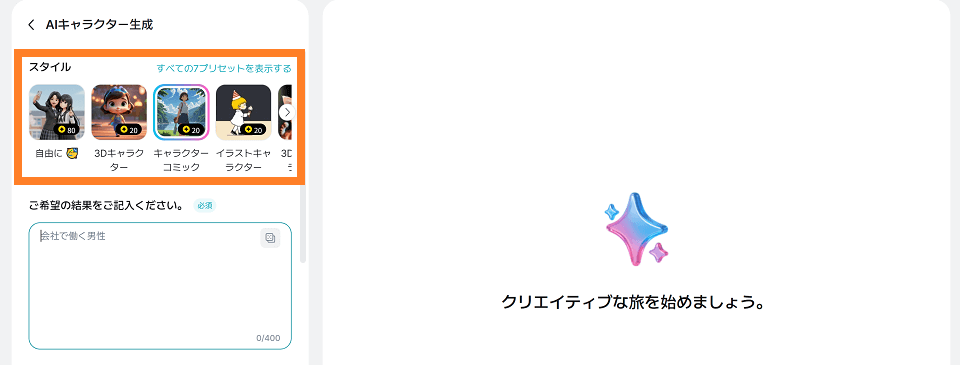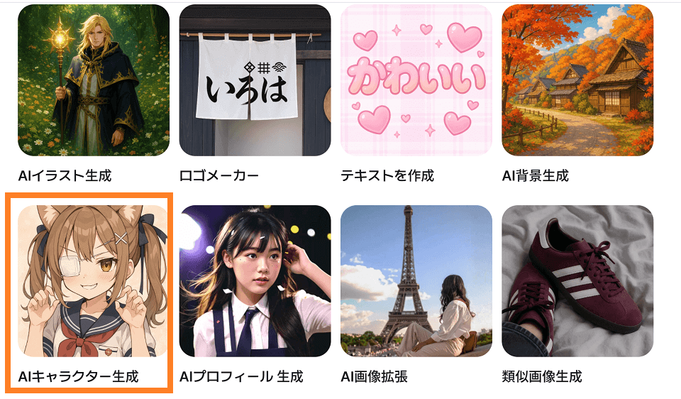 「AIキャラクター生成」を選択