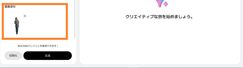画像を添付することで、ポーズなどの細かな指定をすることなくイメージに近い描写が可能となります。