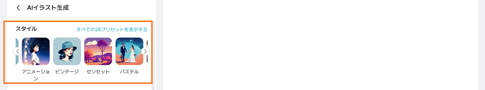 2. 大量に用意されているプリセットスタイル(画風)で指示も簡単