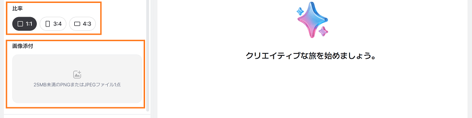 用途に合わせて画像のサイズ(例:正方形1:1、3:4など)を選択します。SNSのアイコンなら正方形、PC向けなら横長、スマホで魅せたいなら縦長がおすすめです。