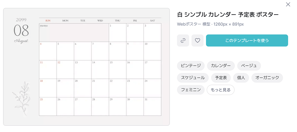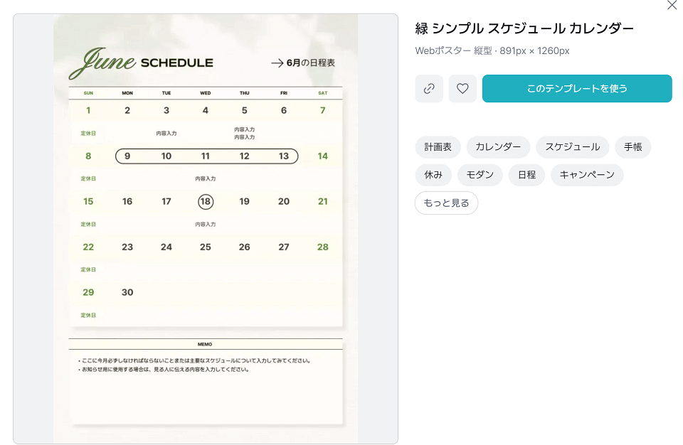 - デザインの「骨格」を重視: 細部の色やイラストは後で変更できます。文字の配置、日付ブロックの大きさ、余白の取り方など、全体的なレイアウト構造が好みかどうかに着目してください。
