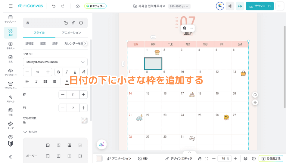 実践!ミリキャンバスを使ったカレンダーデザインSTEP