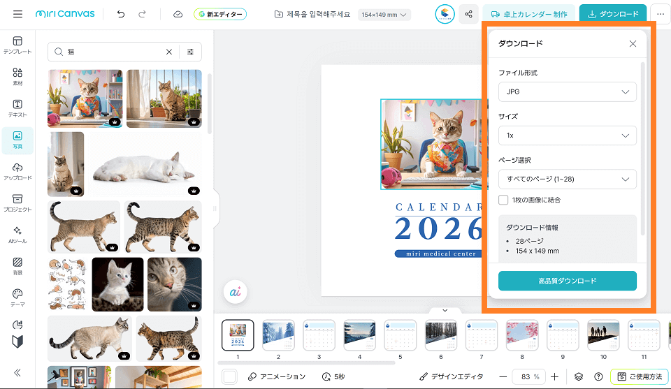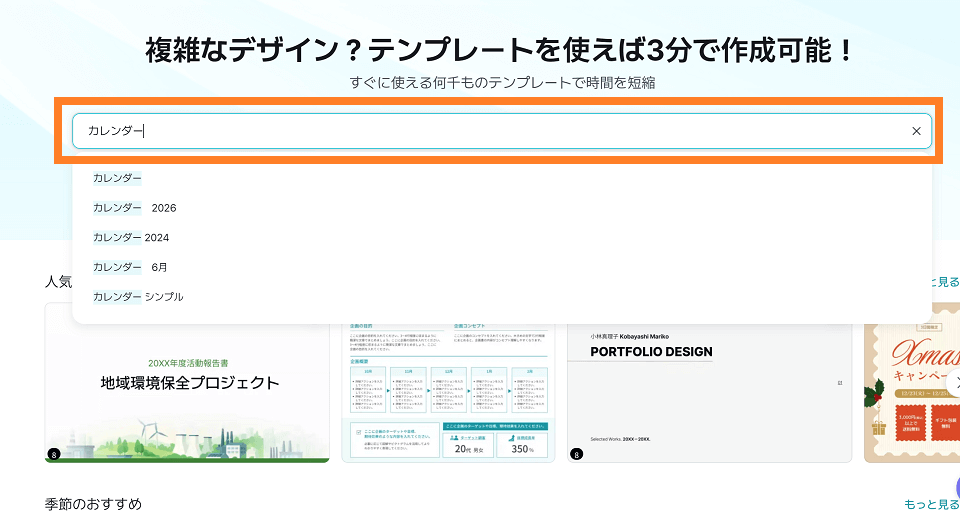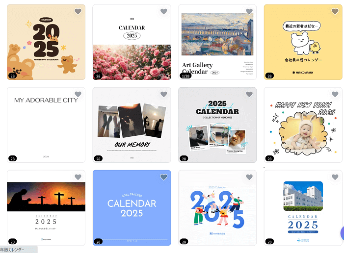 デザインの経験がない方がゼロから始めるのは大変です。ミリキャンバスの最大の魅力の一つは、プロのデザイナーが作成した高品質なカレンダーテンプレートが豊富に用意されている点です。
