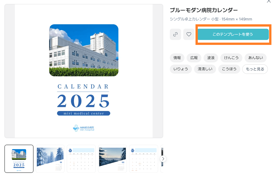 目標のテーマとサイズに合ったテンプレートを選び、「このテンプレートを使用」をクリックします。