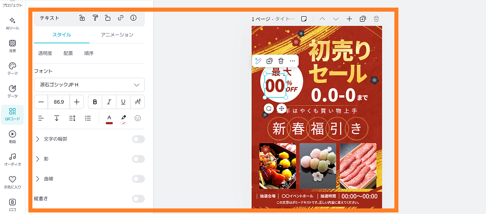 テンプレートに元々入っているキャッチコピーを、あなたのセール内容に合わせて変更します。