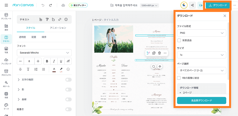 ミリキャンバスを活用した結婚式席次表の作成は、費用を抑えながらも、デザイン性・機能性においてプロに依頼したかのような仕上がりを実現できる最良の方法です。