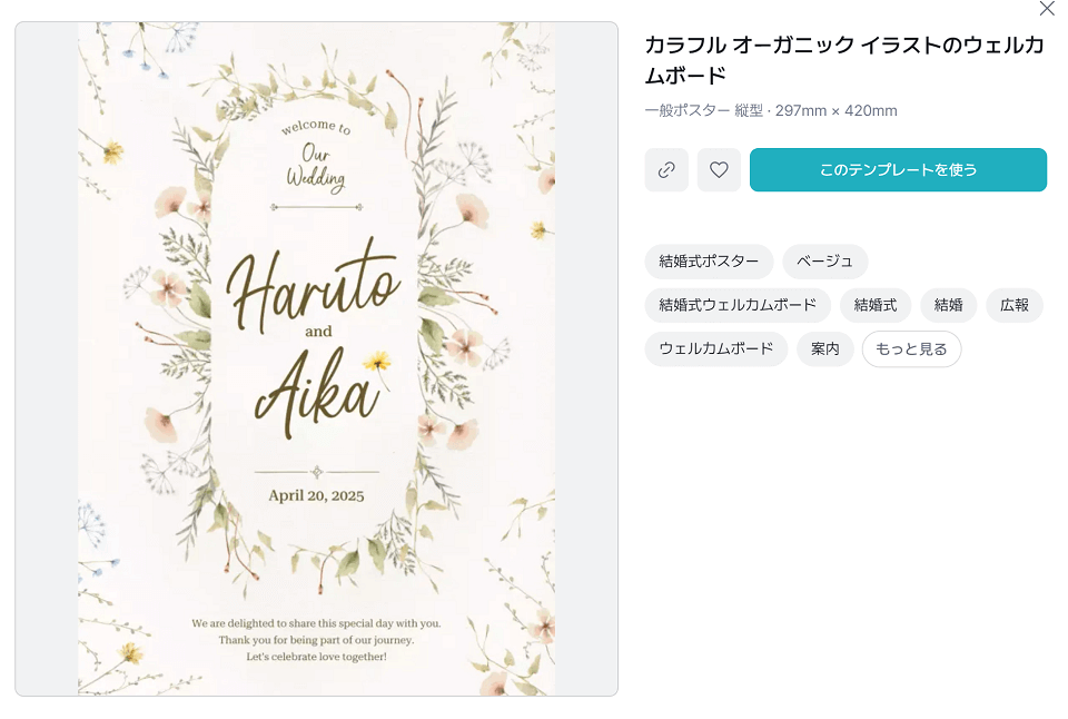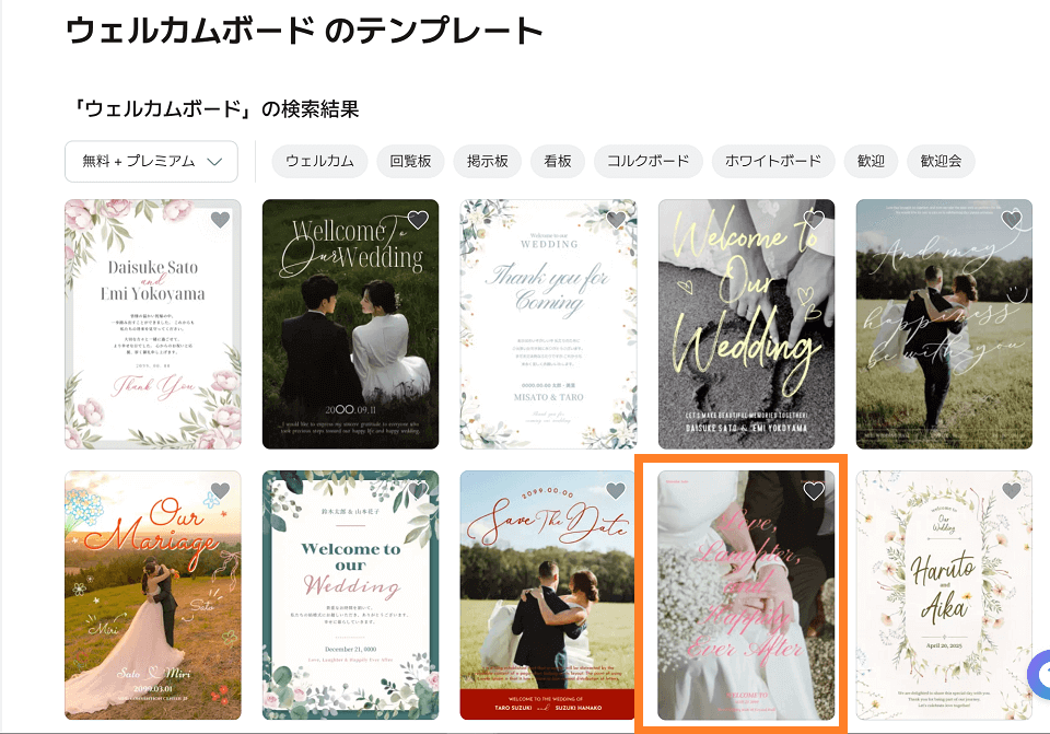上記紹介したウェルカムボードはこちらから使用ください